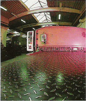 With this machine, the HEKA up- and down-ramps as well as the toe segments are cut to size. Then, these parts are bent on a 320-ton CNC press brake. Burr removing takes place automatically. Electronically controlled drilling and threading/tapping machines are used. |