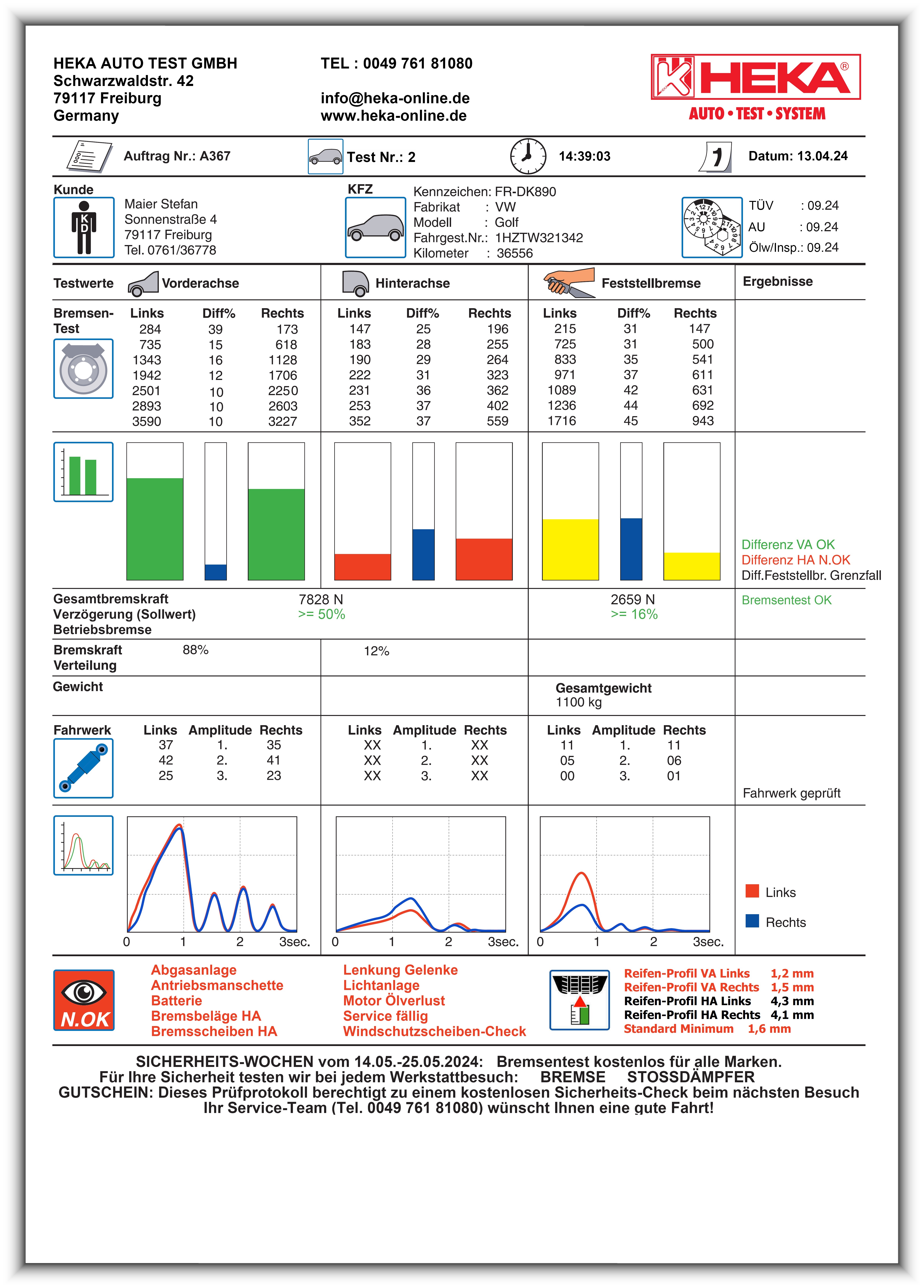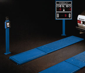 Die vollelektronische Prüfstrasse für Bremse und Fahrwerk mit Infrarot-Fernbedienung und Prüfprotokoll für das informative Service-Kundengespräch.